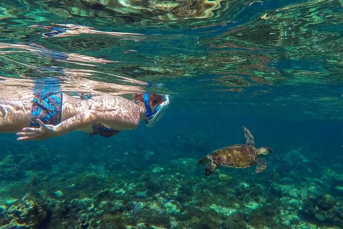 Il tour si spinge diverse miglia al largo per aumentare le possibilità di vedere delfini, tartarughe e balene, poi torna lungo le baie.