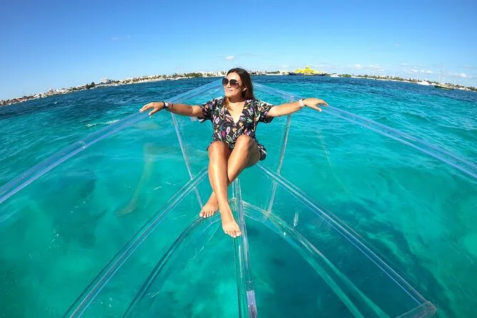 Se vuoi ammirare da vicino le barriere coralline di Isla Mujeres senza bagnarti, questo tour in barca trasparente è l’ideale. Vedrai pesci colorati e coralli attraverso il fondo di vetro, navigando acque tranquille—facile, divertente e adatto a tutte le età.