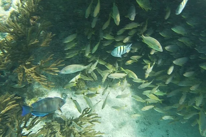 La giornata comprende tutti i biglietti d’ingresso e le tasse più l’uso completo dell’attrezzatura da snorkeling in ogni tappa; dopo aver esplorato le barriere di El Farito, Sac Bajo e il MUSA in barca con la guida, gusterai un pranzo (bevande escluse) prima di tornare insieme a riva.