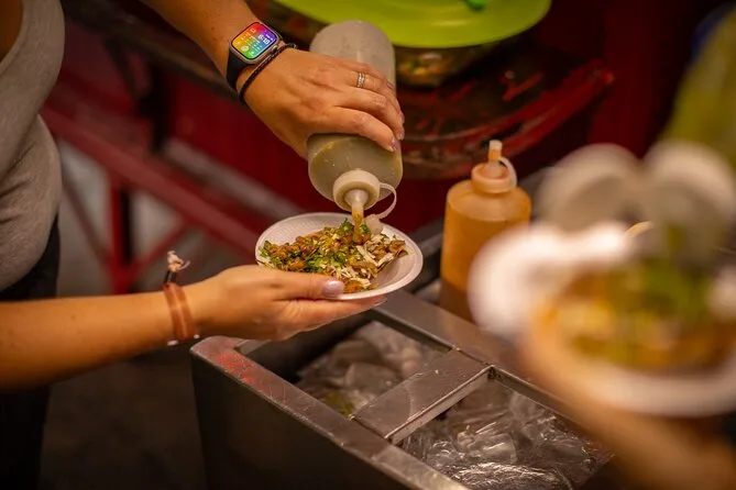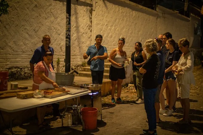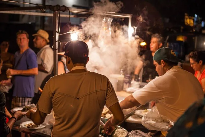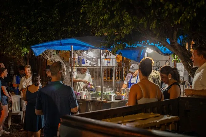 La serata comprende passeggiate guidate in tre quartieri vivaci di Puerto Vallarta con sette assaggi unici di taco—carne asada, pesce, marlin—e si conclude con un cocktail all’agave da El Tasting Room. L’acqua in bottiglia è sempre a disposizione per non restare mai a secco tra le strade animate.