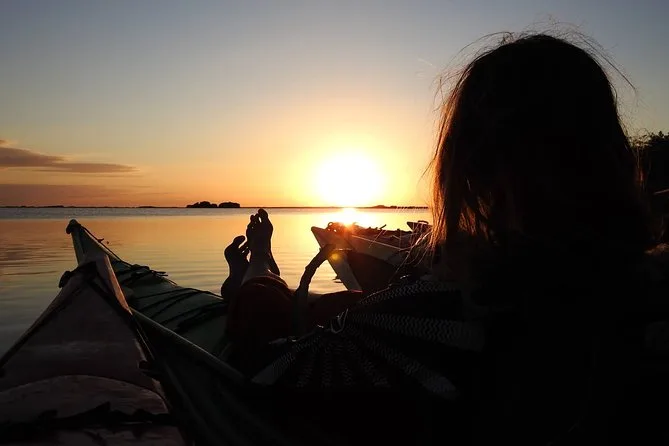 La luce cambiava rapidamente verso il crepuscolo—tutto si tingeva d’oro e poi arrivavano le ombre blu. Faceva anche più fresco; non avevo portato una maglia a maniche lunghe come consigliato, quindi la prossima volta… sì, la porterò. Il ritorno è sembrato più lento ma anche più facile. L’acqua era liscia come uno specchio e ogni tanto si vedeva qualche pesce saltare o increspature misteriose sotto la superficie. Ancora oggi penso a quanto fosse rilassante stare lì, anche se a fine giro le braccia facevano un po’ male.
