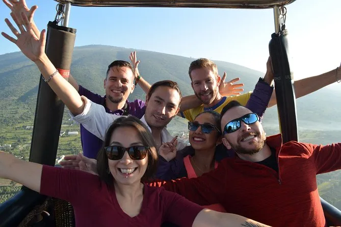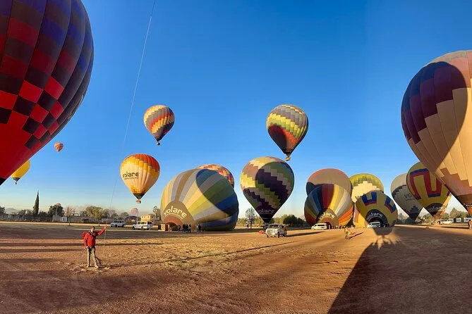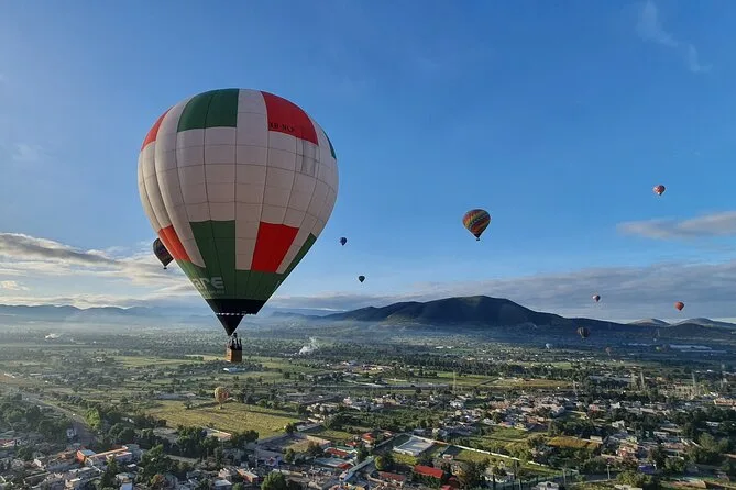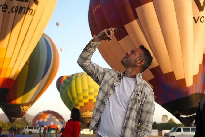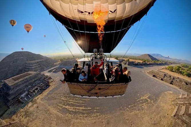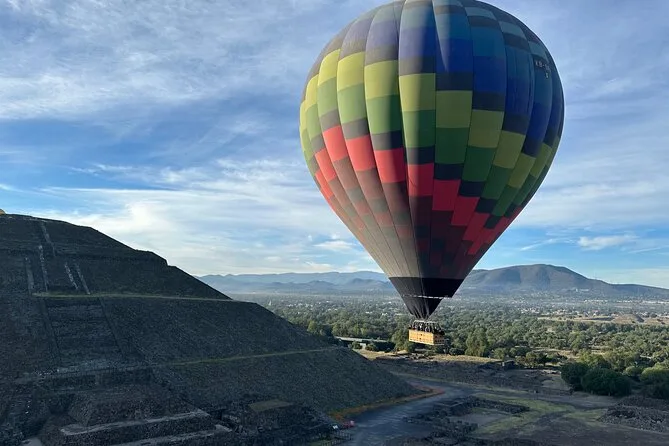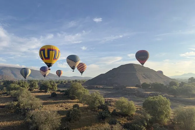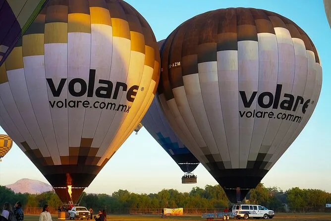 Il tuo giorno include pick-up opzionale dall’hotel a Città del Messico, caffè e snack all’arrivo mentre guardi le mongolfiere gonfiarsi al Volare Balloon Port, un volo condiviso in mongolfiera sopra la Valle di Teotihuacan con un pilota esperto, un brindisi tradizionale all’atterraggio con diploma, più una colazione messicana completa con musica dal vivo mariachi prima del rientro in hotel o di un’eventuale visita autonoma.