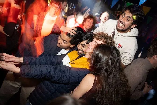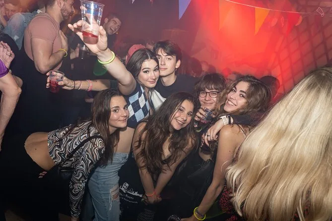 La tua serata include drink illimitati dalle 21:00 alle 21:30, giochi alcolici e facepainting per iniziare, più gadget per la festa. Avrai ingresso gratuito in quattro locali diversi—compreso un club su tre piani—e un shot di benvenuto in ogni tappa (sempre generoso). Le guide tengono alta l’energia fino all’1:00; dopo puoi continuare a ballare fino alle 3:00 se hai ancora voglia.