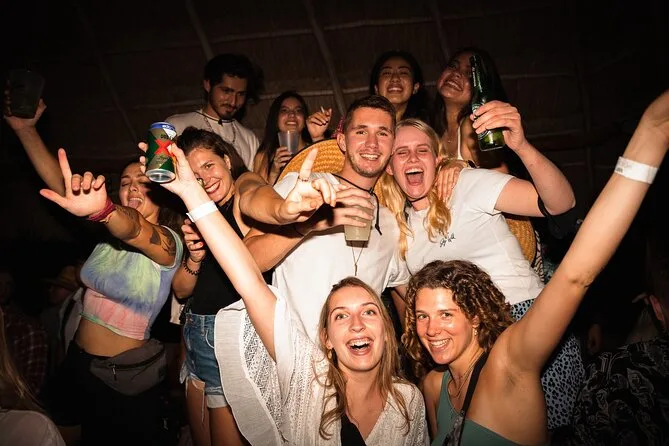 Immergiti nella notte di Tulum con un gruppo amichevole—trucco fluorescente, giochi alcolici, karaoke per chi osa, rooftop con coriandoli e tanti shot gratis. Guide locali mantengono l’atmosfera divertente e sicura, così fai subito nuove amicizie e finisci a ballare dove meno te lo aspetti.