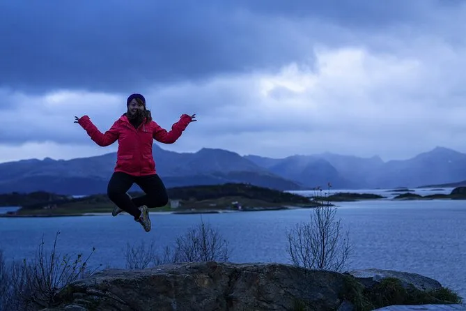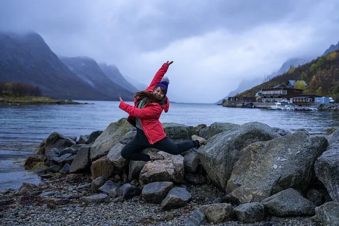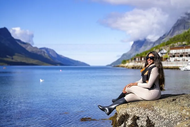 Il tuo giorno comprende trasporto guidato attraverso i fiordi a ovest di Tromsø con frequenti soste per osservare la fauna e consigli fotografici da una professionista. Riceverai le foto scattate dalla guida e un pranzo locale sul mare prima del ritorno in città, tutto con il comfort di un minibus climatizzato e pick-up organizzato se necessario.