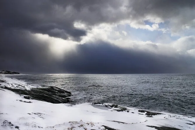 Non pensavo che mi interessassero così tanto rocce e licheni, ma Erik continuava a indicare quelle piccole macchie arancioni sul bianco della neve. Ci raccontò di come a volte gli alci scendano in inverno per cercare il sale—anche se, ad essere sincero, ero più curioso di avvistare una lontra (ma non ci siamo riusciti). A un certo punto restammo in silenzio vicino all’acqua mentre Anna spiegava come catturare la luce che si rifletteva sul fiordo per le foto. Il silenzio era quasi palpabile—solo il rumore degli scarponi che scricchiolavano sul ghiaccio dietro di me. È strano come ti puoi sentire solo e insieme in compagnia, lì fuori.