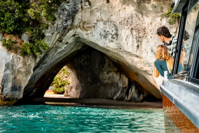 Salpa da Whitianga su un catamarano eco per Cathedral Cove e la grotta marina di Orua, ascoltando storie locali. Fai snorkeling nelle acque limpide del Pacifico (attrezzatura inclusa) e riscaldati con tè o caffè a bordo — c’è anche una doccia d’acqua dolce e servizi per il massimo comfort. Aspettati momenti di silenzio, risate con la guida e una costa che ti resterà nel cuore molto dopo il rientro.