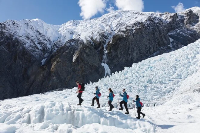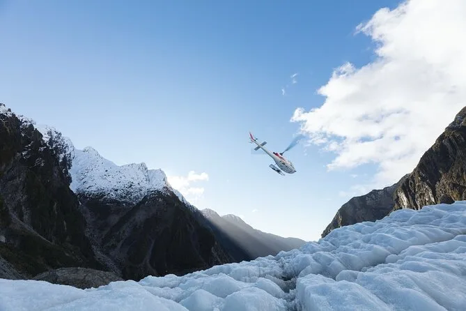 Volerai in elicottero direttamente sul Franz Josef Glacier e camminerai su ghiaccio blu in continuo movimento con una guida esperta che condivide storie locali e curiosità sul ghiacciaio. Indossa i ramponi, attraversa corridoi ghiacciati e fermati dove la luce trasforma tutto in un blu surreale. Incluso tutto l’equipaggiamento e i voli A/R — un’esperienza che ti resterà nel cuore molto dopo aver tolto gli stivali.