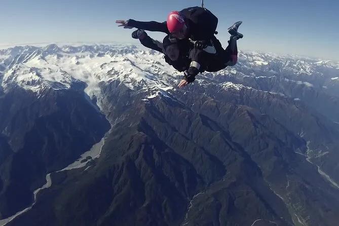 Il tandem skydive raggiunge i 18.000 piedi sopra Franz Josef.