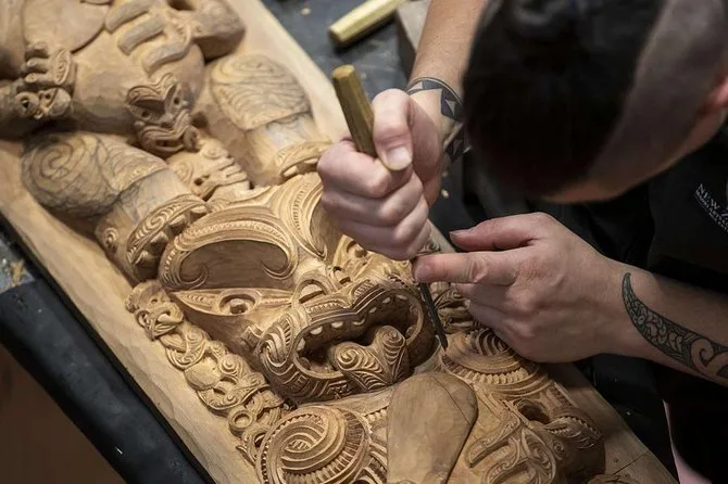 Visiterai la Scuola Nazionale d’Arte Māori dove potrai osservare gli artigiani al lavoro durante il tour guidato.