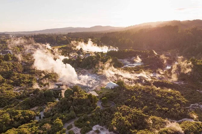 Vedrai l’eruzione del geyser Pōhutu, esplorerai pozze di fango ribollente, visiterai un Marae e una scuola d’arte Māori e incontrerai guide locali.