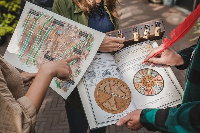Il tuo giorno include uno zaino ben fornito con un antico libro pieno di indizi, scatole chiuse da aprire lungo il percorso nel centro di Amsterdam, strumenti speciali per risolvere enigmi (alcuni davvero divertenti) e un telefono per chiedere aiuto se ti blocchi—tutto pronto al punto di partenza con istruzioni chiare dal tuo host locale prima di partire per la tua avventura in autonomia.