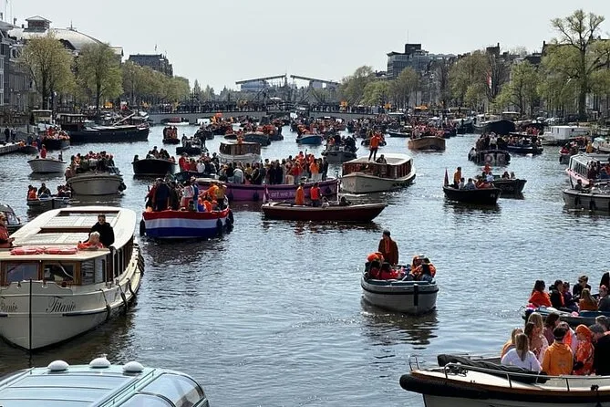 Sali a bordo di una crociera sui canali di Amsterdam per Kingsday e lasciati trasportare tra festeggiamenti arancioni con drink illimitati in mano. Goditi la vista in prima fila delle barche in festa e dei luoghi storici come il Museo Marittimo Nazionale, condividendo risate con locali e il tuo simpatico equipaggio. Un modo vivace e indimenticabile per partecipare alla più grande festa di Amsterdam.