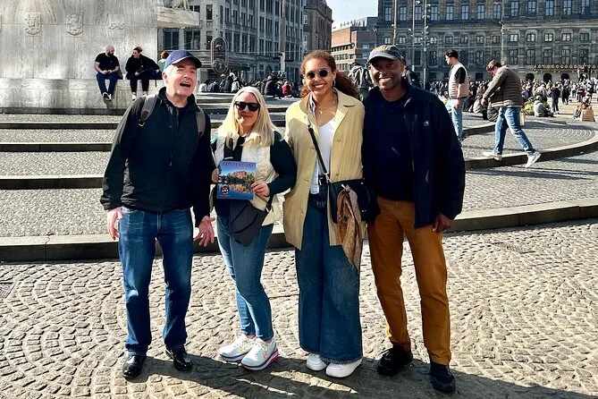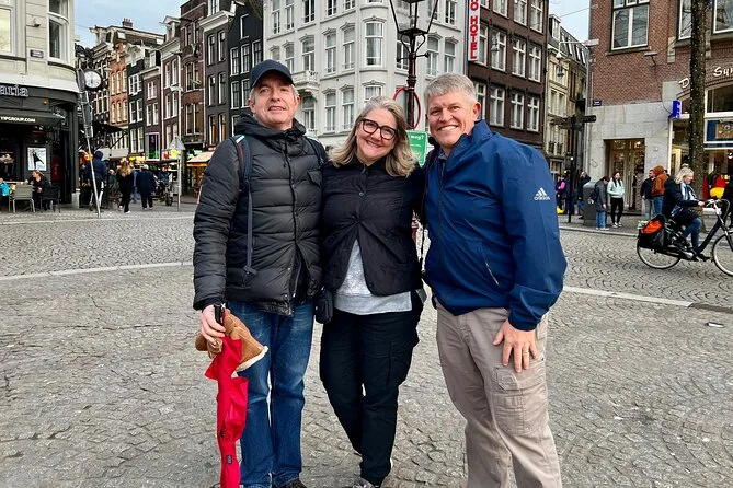 La prima cosa che ho notato uscendo vicino a Piazza Dam è stato il profumo nell’aria — un mix di pioggia sulla vecchia pietra e qualcosa di dolce proveniente da una pasticceria vicina. David, la nostra guida, ci ha fatto segno con un sorriso enorme, come se ci stesse aspettando solo per noi. Abbiamo iniziato a camminare prima ancora che riuscissi a sistemarmi la sciarpa, tra la folla e poi improvvisamente ci siamo infilati in stradine più tranquille dove passavano bici che facevano rumore e un cane abbaiava ai piccioni. David ci ha indicato una casa storta sul canale e ci ha raccontato di come Amsterdam sia nata come un villaggio di pescatori — davvero, non avevo idea che fosse così umile all’inizio.