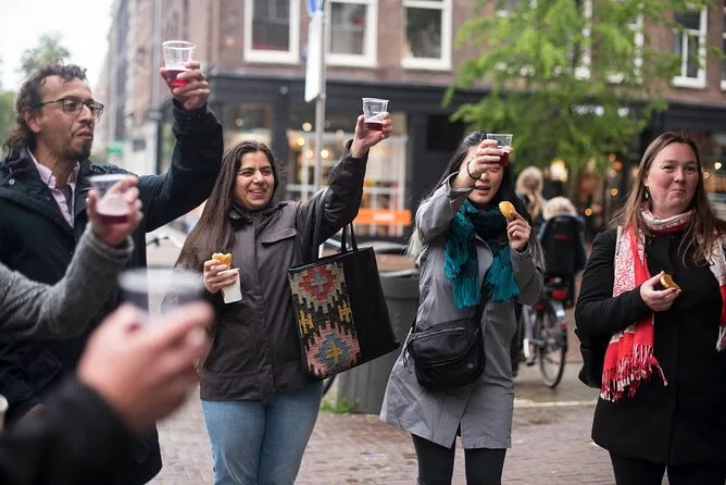 Il tuo pomeriggio comprende tutti gli assaggi al Mercato Albert Cuyp—dalle patatine olandesi agli stroopwafel—più snack da diverse bancarelle e qualche bevanda alcolica. Sarai guidato da un locale che condivide storie e sapori; porta solo appetito (e magari un ombrello).