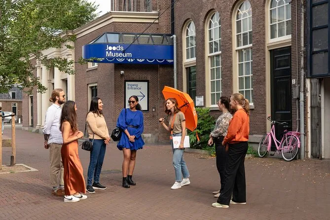 La tua giornata include una guida professionista che ti accompagna attraverso il Vecchio Quartiere Ebraico di Amsterdam fino al Jordaan; tutte le tasse e le spese di gestione sono comprese. La passeggiata è completamente privata per il tuo gruppo e accessibile per sedie a rotelle o passeggini — tieni presente che i biglietti per la Casa di Anne Frank non sono inclusi.