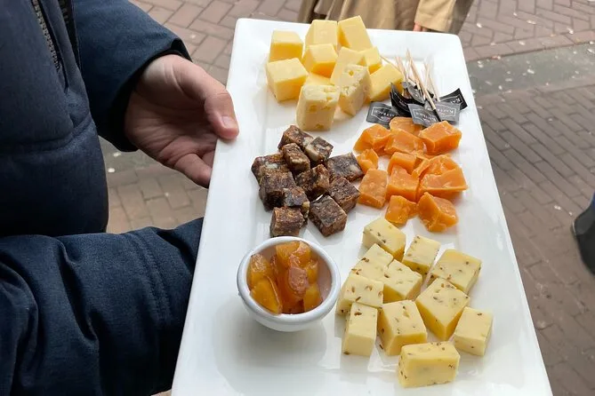 Il biglietto include tutte le degustazioni—almeno sei snack diversi (caffè, formaggio, aringa, poffertjes), più bevande lungo il percorso. La nostra guida racconterà storie su De Pijp e la cultura gastronomica locale mentre camminiamo insieme nel quartiere più vivace di Amsterdam.