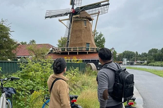 Il tuo giorno include una bici elettrica per pedalare senza fatica (non uno scooter), gruppi piccoli fino a 10 persone, guida in inglese (altre lingue su richiesta), casco e poncho impermeabile disponibili al negozio se serve, e tanto tempo per esplorare Zaanse Schans prima di tornare insieme in traghetto e bici.
