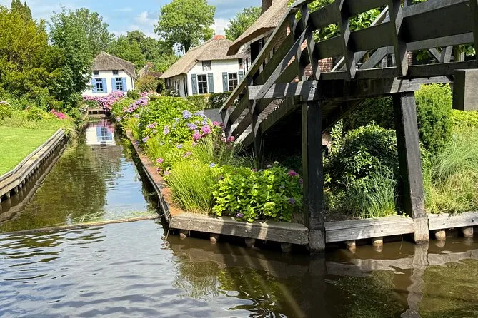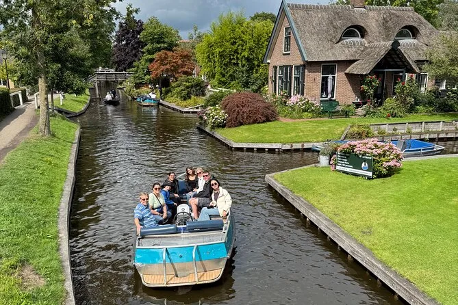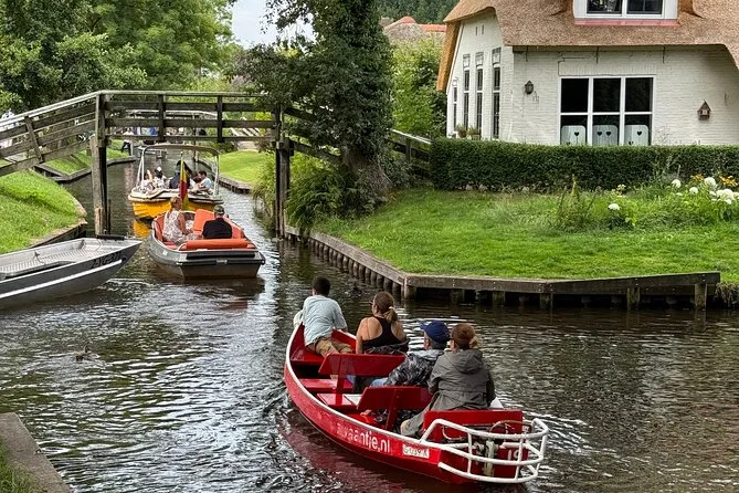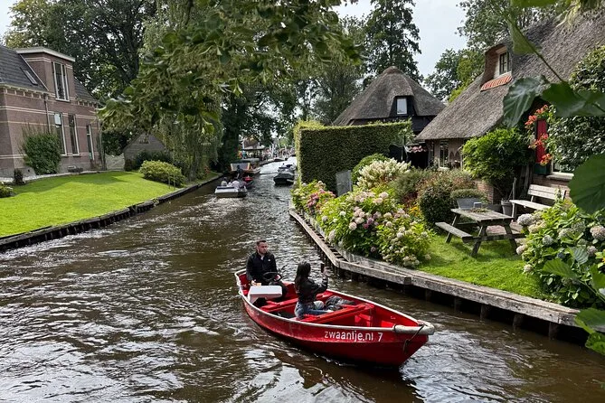 Il tuo giorno include il pick-up dal centro di Amsterdam, tutti gli spostamenti in un confortevole van Mercedes con aria condizionata, un’ora di tour privato in barca piccola tra i canali più antichi di Giethoorn con guide locali che raccontano storie lungo il percorso, più tanto tempo libero per esplorare o rilassarti prima di tornare—o anche essere lasciato alla spiaggia di Zandvoort se vuoi allungare un po’ la giornata.