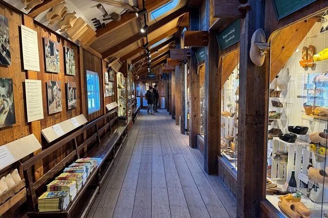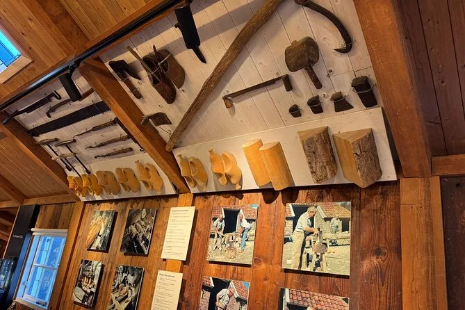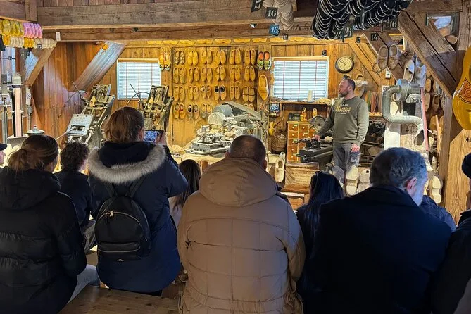 La tappa successiva è stata un laboratorio di zoccoli di legno — il ragazzo che li intagliava quasi non alzava lo sguardo, ma ha sorriso quando gli ho chiesto se qualcuno li indossa ancora oggi. “Solo per ballare o per il fango!” ha scherzato, mostrando un paio a metà lavoro. Il pavimento era coperto di trucioli e odorava pungente, quasi come le schegge di matita. Ho provato un paio (sono più pesanti di quanto pensassi) e ho fatto qualche passo finché il mio amico non ha iniziato a ridere. È strano come qualcosa di così semplice possa sembrare così insolito.