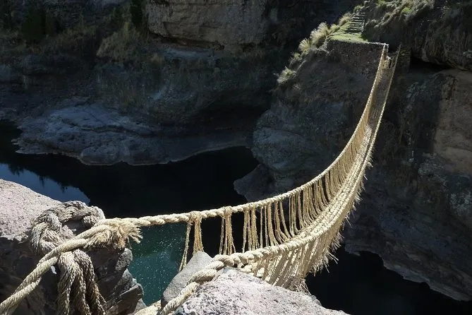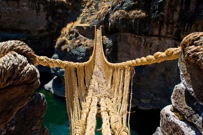 Il settimo giorno ci ha portati a sud, oltre tranquille lagune, fino a Q’eswachaka—l’ultimo ponte Inca tessuto a mano ancora in piedi sul fiume Apurimac. Attraversarlo è emozionante e un po’ snervante (oscilla più di quanto pensi). I locali lo ricostruiscono ogni anno usando corde d’erba—una tradizione più antica di qualsiasi strada qui.