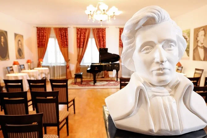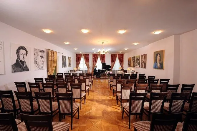 La tua serata comprende l’ingresso alla storica Galleria Chopin di Krakow per un concerto dal vivo delle opere di Frederic Chopin eseguite da musicisti di fama, un’introduzione con la sua biografia e un calice di vino — tutto nel cuore di Old Town, così potrai continuare a esplorare la città dopo lo spettacolo.