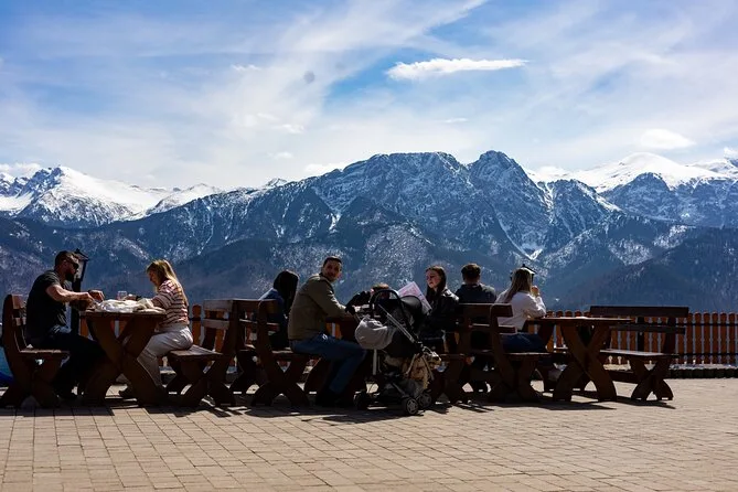 Il tuo giorno include pick-up e drop-off in hotel a Krakow, trasporto andata e ritorno a Zakopane con autista parlante inglese, tutti i biglietti per la funivia Gubałówka e i Bagni Termali di Chochołów (o Gorący Potok se in manutenzione), degustazione di formaggio tipico e vodka regionale a Chochołów, più tempo libero su via Krupówki prima del rientro in comodità.
