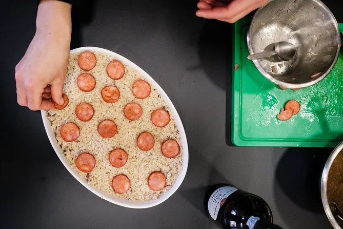 La giornata include tutti gli ingredienti per un pasto portoghese di tre portate più stuzzichini come formaggi e salumi con pane fresco. Durante la lezione potrai gustare vini portoghesi offerti (per adulti), acqua in bottiglia, bibite o tè. Pranzo o cena sono parte dell’esperienza — basta comunicare eventuali esigenze alimentari in anticipo.