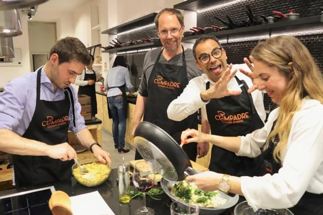 Si mangia quello che si cucina durante la lezione, quindi sì, pranzo o cena sono inclusi a seconda dell’orario scelto.