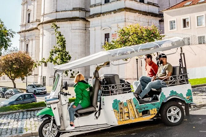 Attraversa i quartieri più antichi di Lisbona in tuk tuk privato, sentendo ogni ciottolo e il profumo delle sardine alla griglia ad Alfama. Con la guida locale che condivide storie (e forse un po’ di Fado), ti fermerai per panorami mozzafiato a Senhora do Monte e passerai davanti ai murales di Mouraria prima di concludere vicino a Praça do Comércio — tutto con pickup incluso.