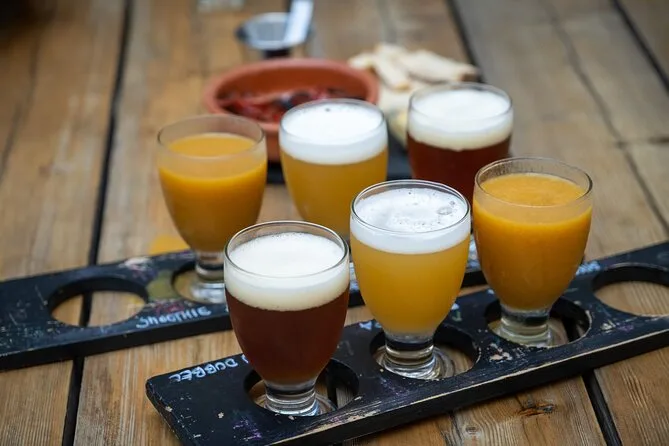 Il pomeriggio include sette birre artigianali prodotte localmente—dalla stout all’IPA fino alla sour—abbinate a quattro snack classici di Porto come panini e petiscos. Avrai accesso dietro le quinte di una birreria e farai tappe in alcuni dei bar e mercati più amati di Porto, per finire la giornata in città con la pancia piena (e magari un po’ allegro).