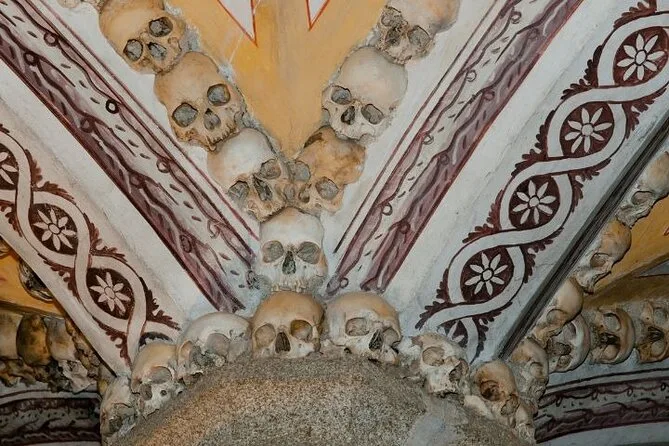 La nostra prima vera tappa è stata la Cappella delle Ossa. Ammetto che nulla ti prepara davvero a questo luogo. L’odore all’interno è leggermente di muffa, quasi come vecchi libri, e le pareti sono letteralmente ricoperte di ossa umane. La guida ci ha spiegato come i monaci francescani l’abbiano costruita per ricordarci la fragilità della vita. Non è inquietante, piuttosto stranamente pacifica; mi sono sorpreso a sussurrare senza nemmeno volerlo.