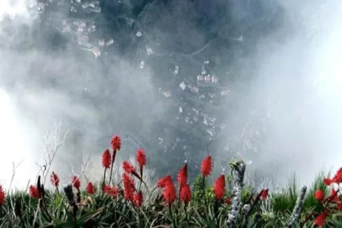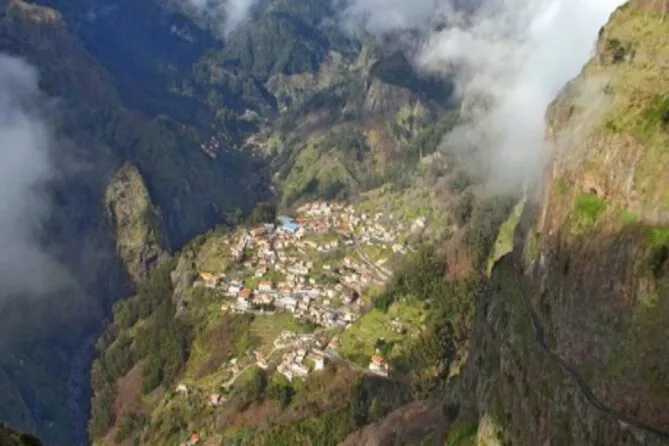 Poi siamo saliti ancora più in alto fino a Eira do Serrado. Il taxi si è fermato poco sotto il punto panoramico, e da lì è solo una breve passeggiata—anche se ammetto di essermi fermato a metà strada per riprendere fiato e scattare una foto ai fiori selvatici che spuntavano tra le rocce. Dalla cima, Curral das Freiras (la Valle delle Suore) si trova giù in fondo, in questa profonda conca verde, circondata da picchi frastagliati. Lì è tutto silenzio, solo il vento tra i pini e le campane lontane di una chiesa. João ci ha spiegato come un tempo le suore si nascondevano qui durante le incursioni dei pirati—e ci ha mostrato persino una vecchia foto sul suo telefono.