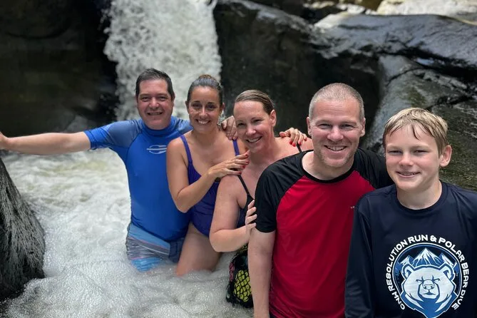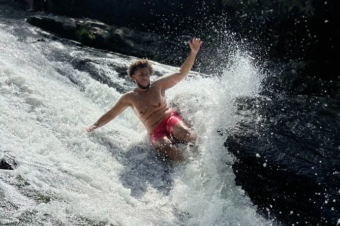 Non pensavo di ridere così tanto durante un’escursione, e invece è successo appena venti minuti dopo aver lasciato San Juan. La nostra guida, Luis (che tutti sembravano conoscere per nome), ha parcheggiato il van su una stradina stretta dove l’aria profumava di foglie bagnate e qualcosa di dolce che non riuscivo a identificare. Lo abbiamo seguito tra gli alberi — una camminata breve, circa quindici minuti — finché non abbiamo sentito il rumore dell’acqua che scorreva sulle rocce. Quel suono si è fatto più forte e poi eccolo lì: uno scivolo naturale, una pietra liscia bagnata dal fiume. Ho visto prima alcuni ragazzi del posto scivolare giù veloci. A dire il vero, il cuore mi batteva forte quando è toccato a me.
