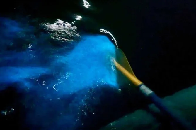 Utilizzerai kayak tandem con fondo trasparente guidati da esperti locali durante il tour nella baia bioluminescente.
