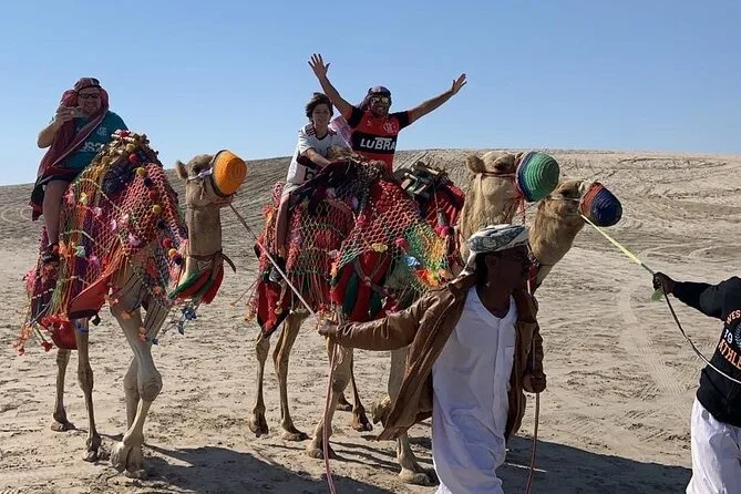 La giornata include il pick-up dal punto scelto a Doha con un veicolo climatizzato guidato da una guida locale che si occupa di tutto, dallo sgonfiaggio delle gomme alle storie lungo il tragitto. Durante il viaggio avrai acqua in bottiglia e caffè o tè durante le soste. È incluso un breve giro in cammello a Sealine Beach mentre si preparano le gomme per il dune bashing; l’attrezzatura per il sandboarding è fornita se vuoi provarlo. Il quad può essere aggiunto se selezionato in fase di prenotazione, prima di tornare comodamente a Doha.