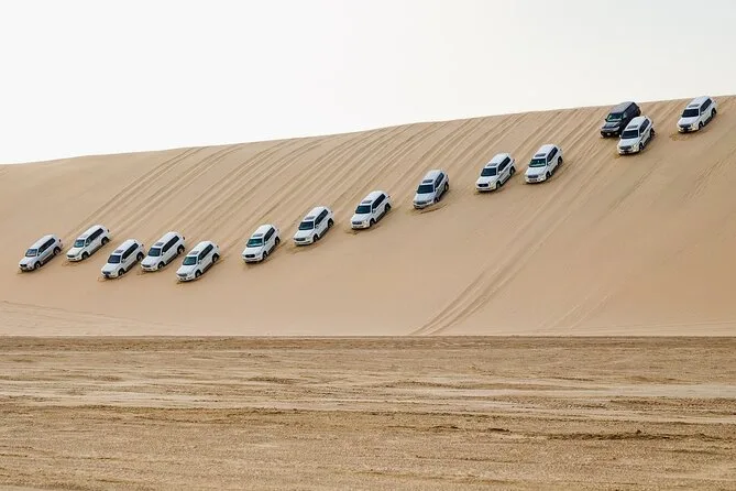 La tua giornata include trasporto privato con aria condizionata e pickup dal tuo hotel o luogo scelto a Doha, acqua in bottiglia lungo il percorso, emozionante dune bashing in un 4x4 Toyota guidato da una guida locale esperta, soste per tè o caffè tradizionali nella brezza del deserto (a volte con possibilità di cavalcare cammelli o fare foto con falchi), oltre a tempo per sandboarding sulle dune prima di raggiungere Khor Al Adaid – il Mare Interno – per un rapido bagno prima di tornare alla vita di città.