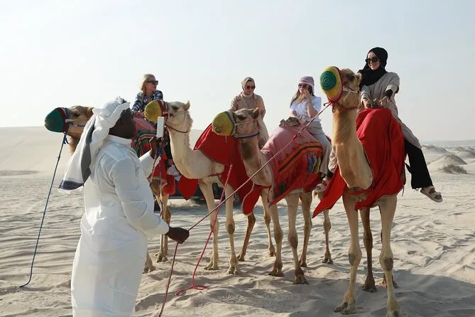 Partirai da Doha per un’iniezione di adrenalina con dune bashing guidato da un esperto locale, proverai a mantenere l’equilibrio su un cammello, sorseggerai tè sotto il cielo aperto e finirai dove le dune dorate si tuffano nel mare turchese di Khor Al Adaid. Il pick-up è incluso — porta solo la tua curiosità (e magari gli occhiali da sole). Il deserto ha una magia tutta sua, basta lasciarsela entrare.