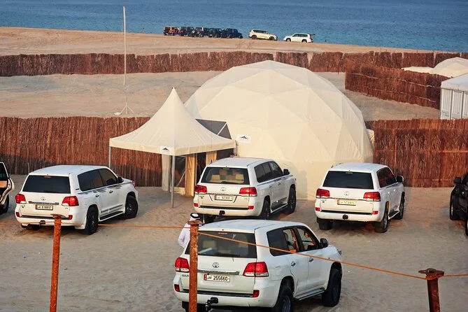 La tua giornata include pick-up e drop-off privati in hotel a Doha, dune bashing guidato con autista autorizzato tra le sabbie di Mesaieed fino a Khor Al Udaid (Mare Interno), giri in cammello a Sealine Beach se vuoi, acqua in bottiglia e bibite per tutto il giorno, buffet per pranzo o cena al campo Al Rahal con tempo per rilassarti accanto al falò o sui lettini—e sì, anche l’assicurazione di viaggio è compresa prima del comodo rientro.