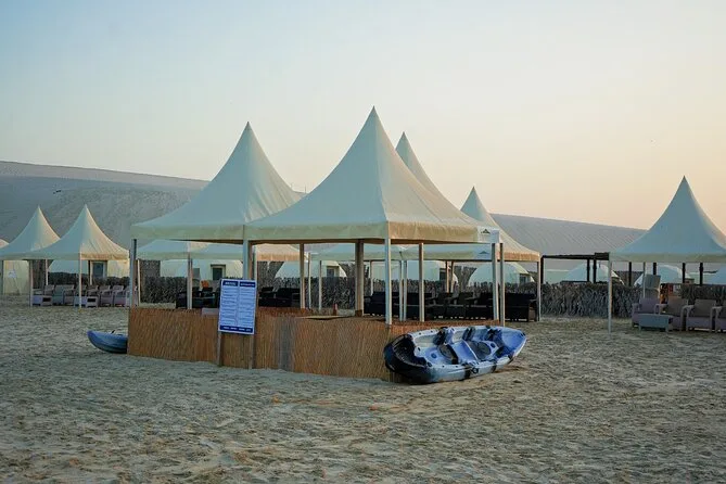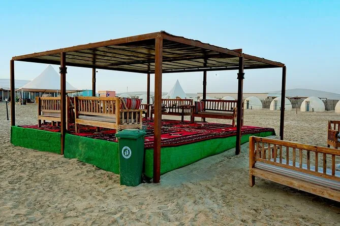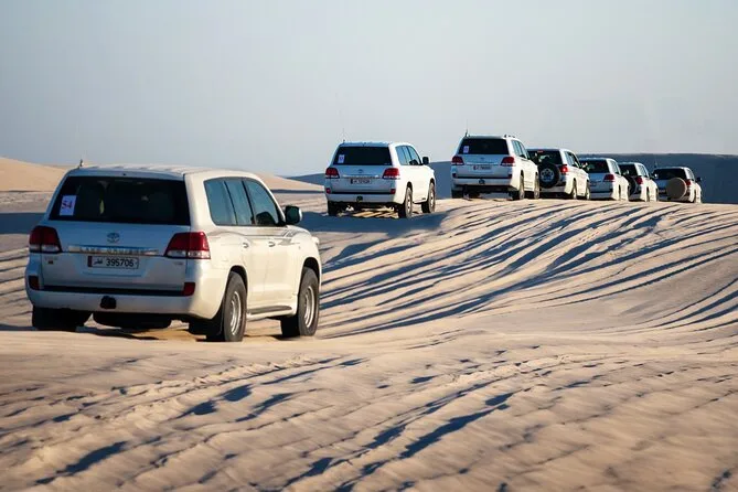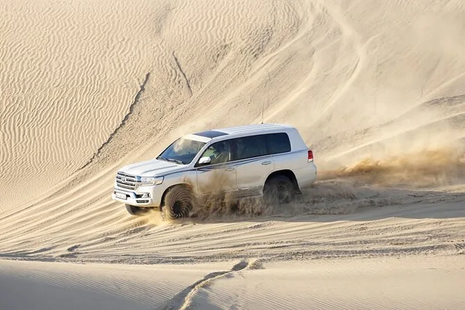 Sentirai il cuore battere forte durante il dune bashing vicino a Sealine Beach, poi ti fermerai per momenti di quiete al Mare Interno del Qatar. Assapora un BBQ fumante al campo Al Rahal, condividi risate con la guida e magari ammira il tramonto sulle dune infinite—tutto con pick-up in hotel e tutto organizzato per te.