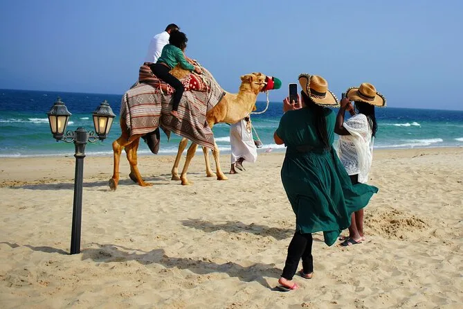 I giri in cammello sono disponibili sulla spiaggia di Sealine come parte dell’esperienza.