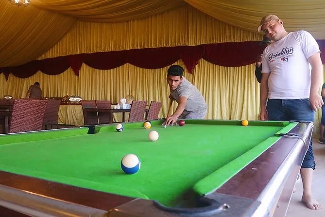 Alla fine siamo arrivati al campo desertico Al Rahal. Il primo a colpire è stato il profumo della carne alla griglia—fumo di BBQ che si diffondeva tra lettini e cuscini majlis sotto grandi tende. Il pranzo (o la cena se arrivi più tardi) è a buffet; ho caricato il piatto con kebab di agnello e riso, poi mi sono rilassato con un tè dolce mentre dei bambini giocavano a calcio vicino. C’è tempo per fare una passeggiata o semplicemente stendersi a guardare la luce che cambia sulle dune. Se hai la fortuna di fermarti a dormire (avrei voluto), ci sono camere private con veri bagni—non me lo aspettavo così isolati.