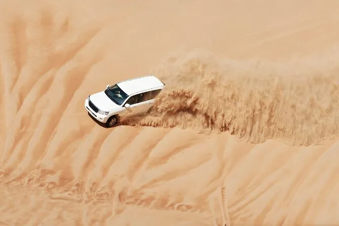 Il dune bashing consiste nel guidare un 4x4 sulle grandi dune di sabbia per un’esperienza adrenalinica.