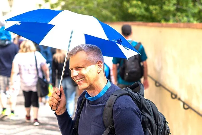 Incontra la tua guida nella Città Vecchia di Praga, ascolta leggende sotto l’Orologio Astronomico, attraversa il Ponte Carlo con storie avvolgenti, poi prendi il tram fino al Castello per una vista mozzafiato. Risate, dettagli sorprendenti e l’essenza di Praga che ti resterà nel cuore.