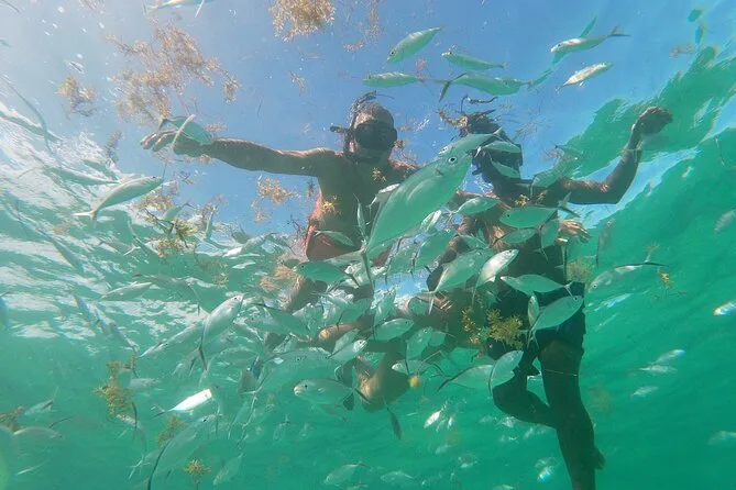 Poi via per una veloce doccia e subito sulla crociera snorkeling—la musica già pompava prima ancora di lasciare la riva. La barca era più grande di quanto immaginassi (ho contato almeno cinquanta persone), con spazio per sdraiarsi e farsi scaldare dal sole. Snorkeling sulla barriera corallina è stato pazzesco—pesci colorati ovunque, qualcuno mi pizzicava le dita dei piedi—e quando sono tornato sul ponte qualcuno mi ha passato un punch al rum senza chiedere. C’è qualcosa nel ballare goffamente con sconosciuti mentre il sale ti asciuga sulla pelle che rende tutto più leggero. Siamo finiti in una piscina naturale poco profonda, con i drink ancora in mano, tutti a cantare a metà voce la canzone che partiva dopo. Quella luce sull’acqua me la ricordo ancora, sai?