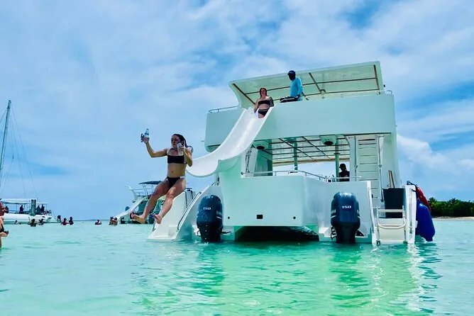 Salirai su una barca party a Punta Cana dove l’hip hop fa da colonna sonora fin dal primo istante—open bar illimitato, DJ dal vivo, avvistamento delfini dal ponte e una tappa pazzesca alla sandbar per nuotare o ballare immersi nell’acqua caraibica. Con pick-up andata e ritorno e uno staff locale che anima la festa, è pura energia—perfetto se ami la musica e non temi di bagnarti i piedi.