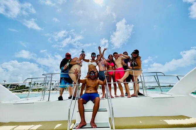 Il tuo giorno include il trasporto andata e ritorno dall’hotel a Punta Cana, tutta l’attrezzatura per lo snorkeling se vuoi provarla ad Anorak (anche solo per cinque minuti), drink illimitati dall’open bar con cocktail tropicali e rum punch sempre a disposizione, tanti snack e vassoi di frutta fresca serviti da un equipaggio che sa come tenere alta l’energia—e ovviamente un DJ dal vivo più un team di animazione che organizza gare di ballo sia in mare che alla sandbar prima di tornare insieme a riva.