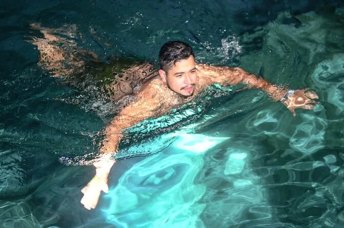 Dopo, abbiamo attraversato pozze d’acqua così profonde che le scarpe facevano un rumore di squish per un bel po’. Poi, tutto è diventato silenzioso quando siamo arrivati a un cenote nascosto dietro una folta vegetazione verde. L’acqua fredda sulla pelle scottata dal sole — ancora ricordo quel tuffo che mi ha sorpreso. Nessuno ci ha mai messo fretta; José si è seduto su una roccia a raccontare storie di quando sua nonna nuotava lì da bambina. La luce filtrava azzurra e tremolante sulle pareti della grotta.