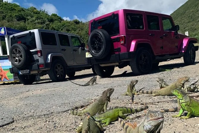 Il tuo giorno include l’uso di una Jeep condivisa o privata con carburante, comunicazione radio con la guida locale durante il percorso tra Sint Maarten olandese e francese, due bevande a persona (acqua e soda) e un’ora di tempo libero per nuotare o rilassarti sulla spiaggia di Great Bay prima del rientro vicino al porto crociere o al tuo alloggio.