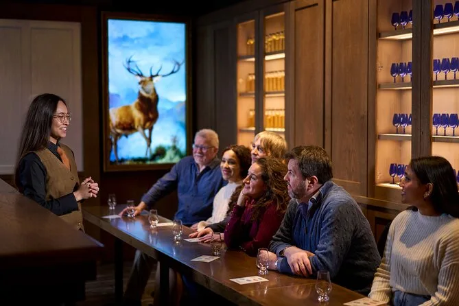 La tua visita include l’ingresso al Scotch Whisky Experience accanto al Castello di Edimburgo, la guida di un esperto locale, l’esplorazione pratica degli aromi delle cinque regioni del whisky scozzese, un dram di single malt o blended Scotch (o Irn Bru per i minori di 18 anni), l’accesso alla più grande collezione di bottiglie di Scotch whisky al mondo, l’uso di audioguide in 20 lingue se necessario, e un bicchiere di cristallo da degustazione come souvenir prima di tornare sulla Royal Mile.